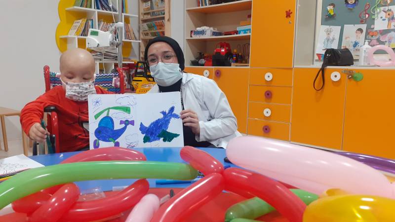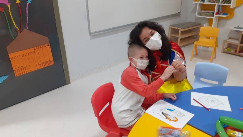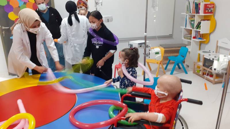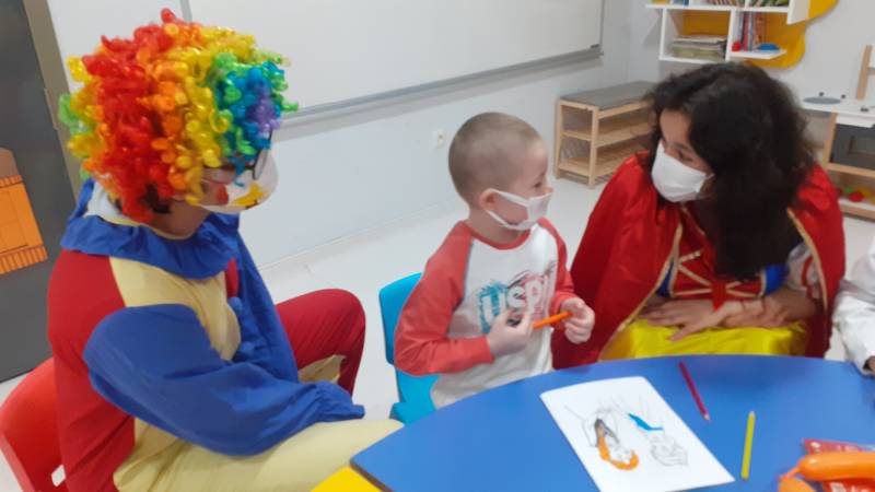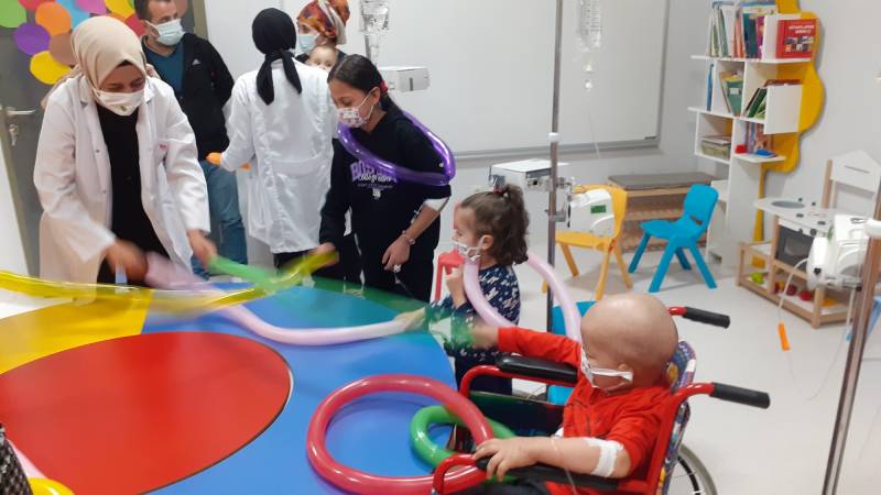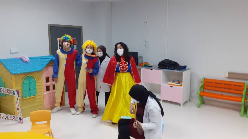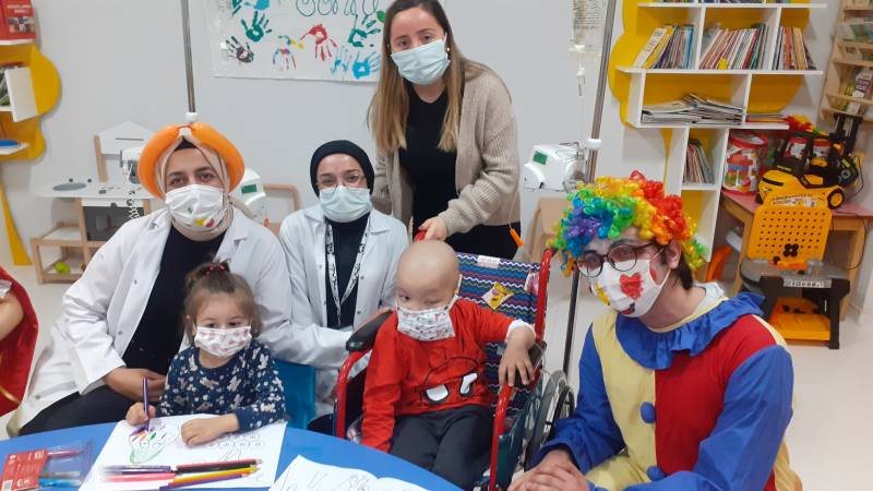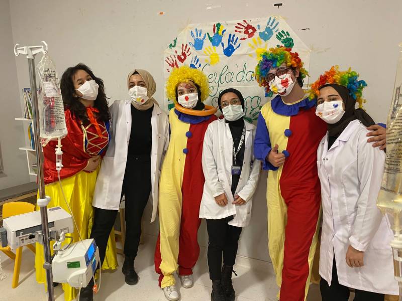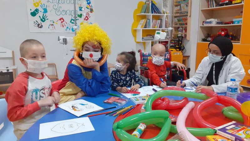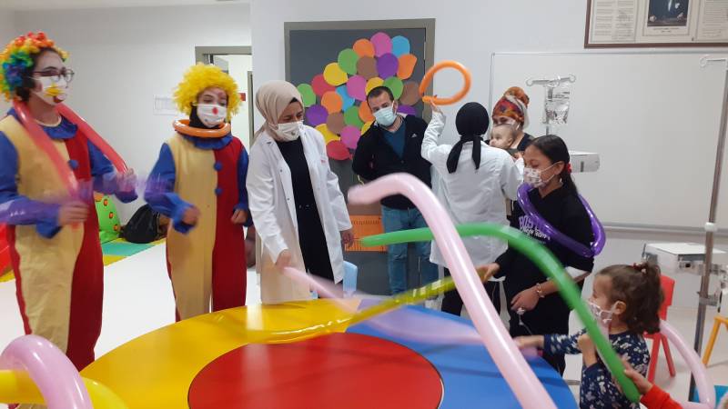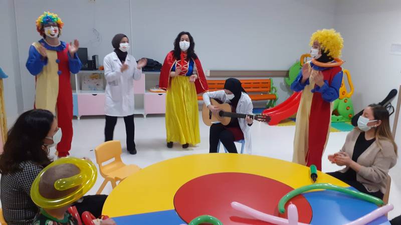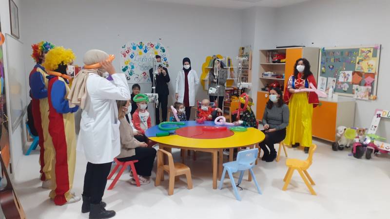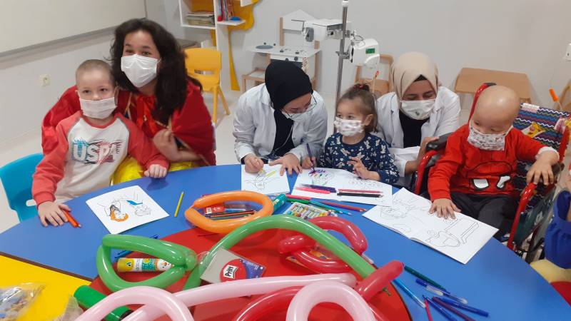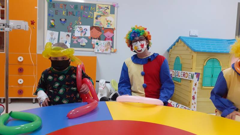 SKS Kültür Şube Müdürlüğümüzce yürütülen projede SEAH Çocuk Onkoloji Servisi'ndeki etkinlikleri bu hafta Düşlerden Gülüşlere Öğrenci Topluluğumuz gerçekleştirdi. Palyaço gösterisi, sulu boya çalışması, canlı müzik dinletisi ve oyunlar ile hastanede tedavisine ve eğitimine devam eden çocuklar keyifli vakit geçirdi.
