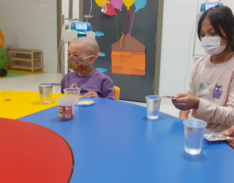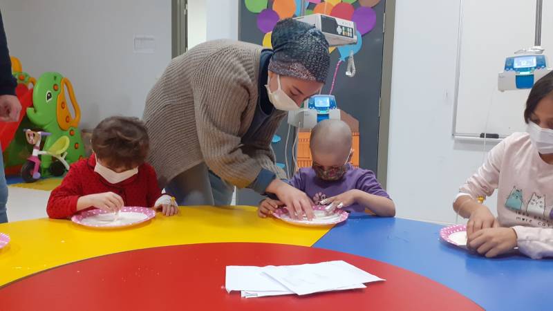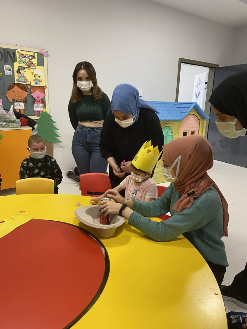 Deneyler, bowling, parmak kukla, karton kesme ve boyama çalışması ile hastanede tedavisi devam eden çocuklar keyifli vakit geçirdi.