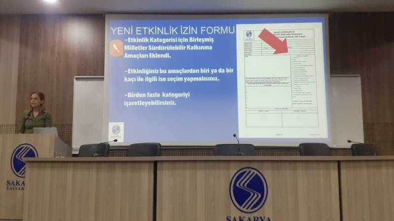 İkinci bölümde ise; Sakarya Üniversitesi Toplumsal Kalkınma ve Sürdürülebilirlik Ofisi (TOKAS) adına Koordinatör Yardımcısı Doç. Dr. Aliye Suna ERSES YAY ve Engelsiz Yaşam ve Destek Koordinatörlüğü adına Koordinatör Doç. Dr. Cihan SELEK ÖZ yapılan çalışmalar hakkında topluluk başkanlarını bilgilendirdi.