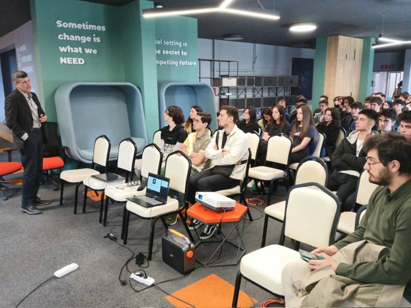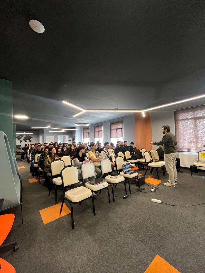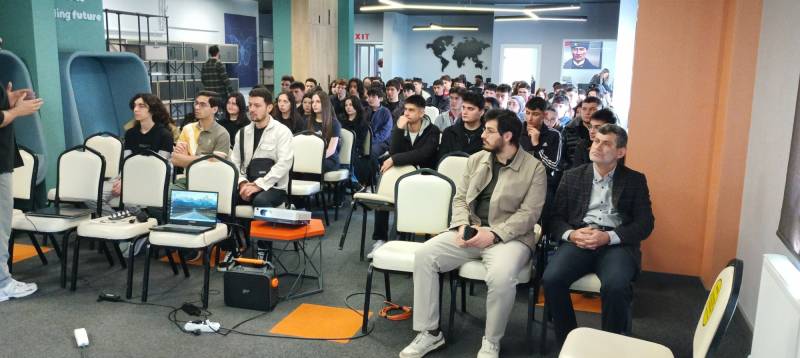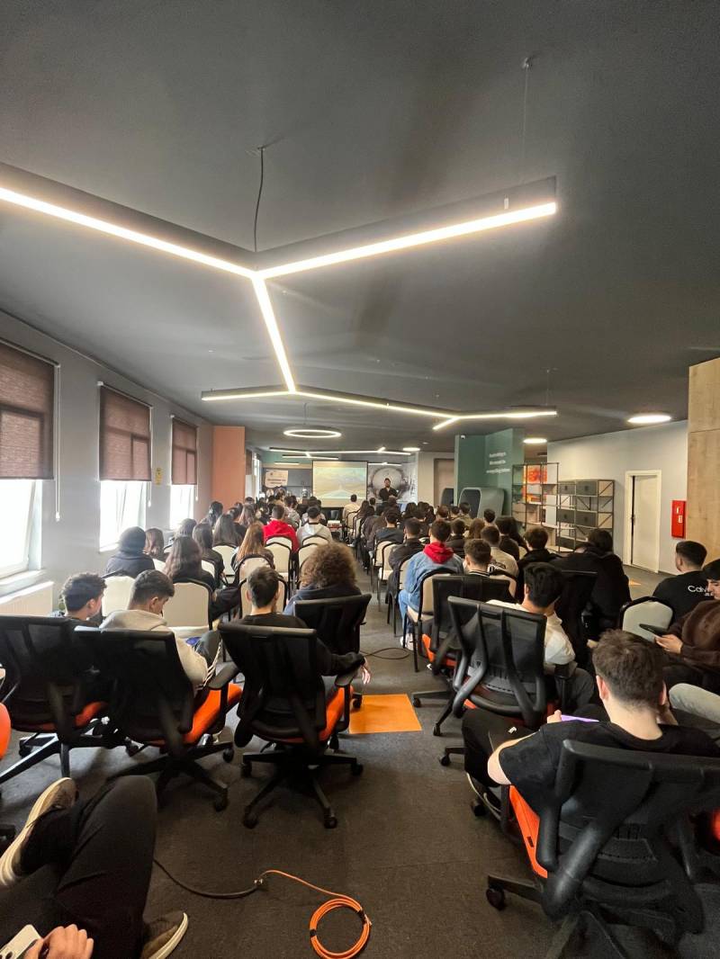 Sakarya Üniversitesi Milli Teknoloji Atölyesi'ndeki programda Prof. Dr. Sedat Sert İnşaat Mühendisliği, Arş. Gör. Ahmed Receb Demirel Makine Mühendisliği ve Arş. Gör. Enis Kara Elektrik Elektronik Mühendisliği bölümleri ile ilgili tanıtım sunumu gerçekleştirdi.